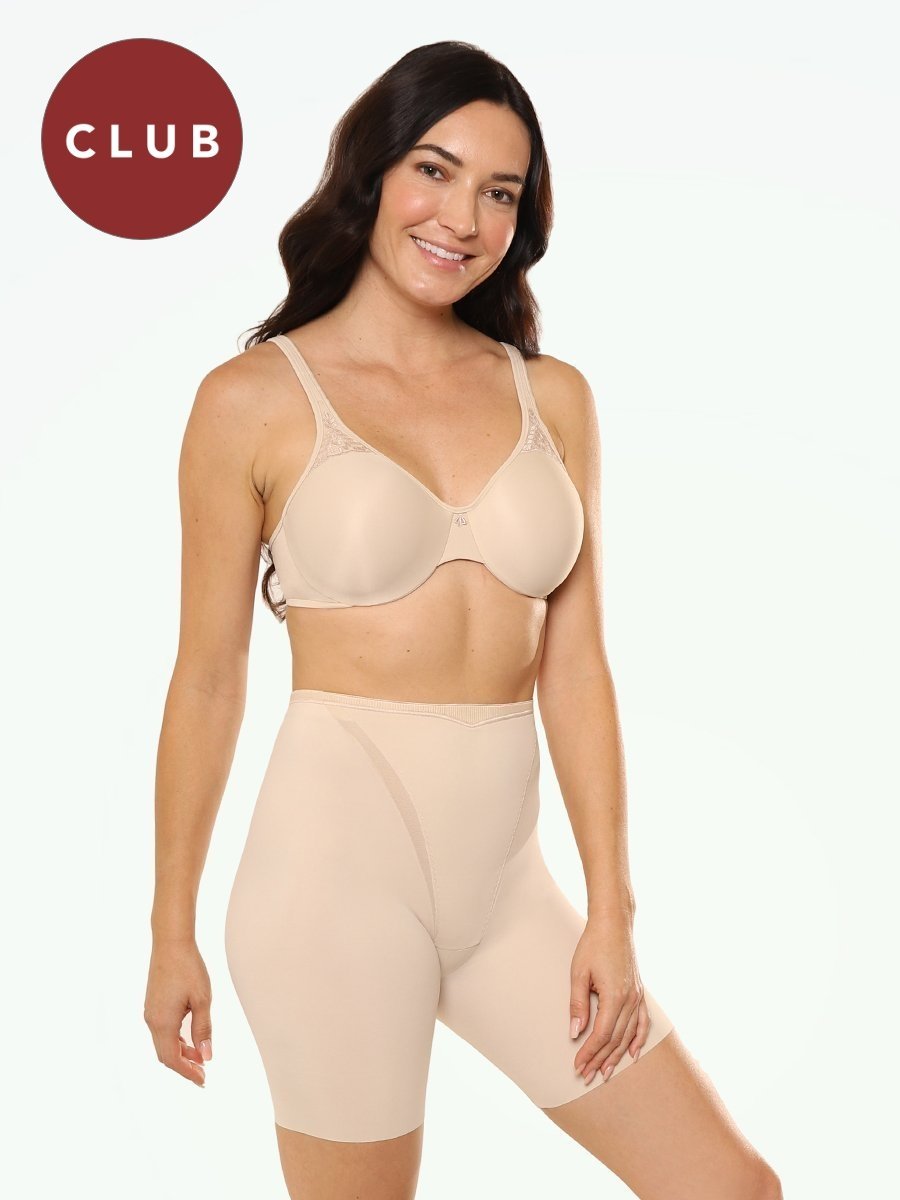Your new shapewear BFF, this Maidenform Firm Foundations Thigh Slimmer is the perfect companion under workout gear and any skintight dress. Stay cool in a breezy fabric that always moves with you. Targets your tummy, waistline, rear and thighs for an hour glass figure without ever squeezing or digging in. Smooth, seamless, and comfortably confident.
